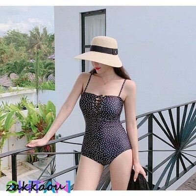 ドット キャミソール風 かわいい モノキニ オールインワン 小胸 ママ 水着 バックレス レディース 温泉 着痩せ 海水浴 砂浜 リゾート 20代30代40代
