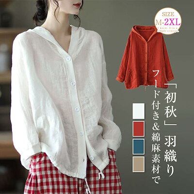 カーディガン 羽織り フード付き パーカー 長袖 レディース 春 夏 秋 綿麻 リネン 羽織 ゆったり フェミニン 着回し シンプル ビッグシルエット 高見え 薄手 カジュアル 体型カバー 細見え