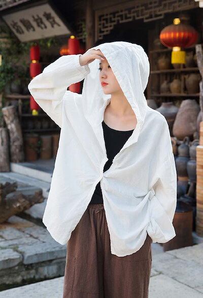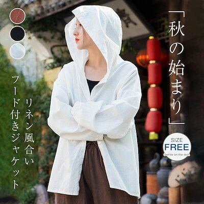 パーカー レディース 春 夏 リネン コットン シャツ ライトアウター 軽アウター 長袖 UVカット 綿麻 パーカー ジャケット カーディガン フード付き 長袖 紫外線対策 日焼け防止 女性用 大人