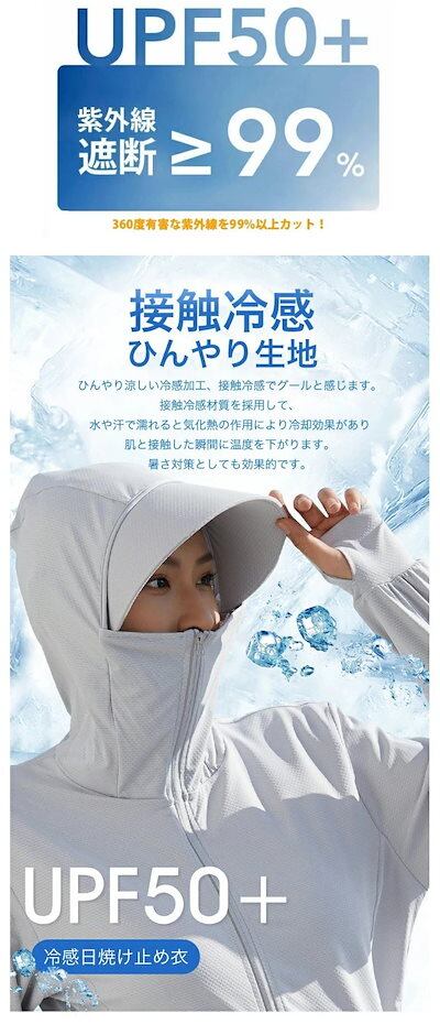 uv パーカー 指穴 uvカット ひんやり 接触冷感 ラッシュガード レディース フード付き カー