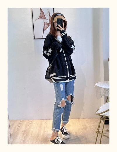 韓国ファッション 制服カーディガン レディース ニット アウター 羽織り トップス ラウンドネック