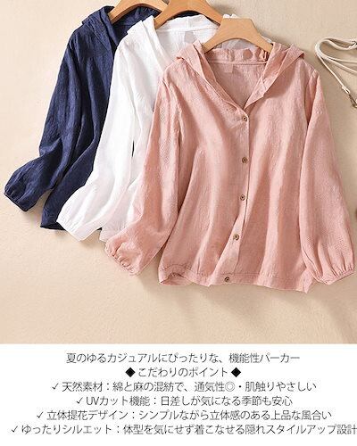 uvカット パーカー 薄手 大きいサイズ レディース アウター 春夏 カーディガン パーカー おしゃれ きれいめ 日焼け防止 冷房対策 パーカー フード付き UVパーカー 夏用 綿麻 ジャカード フー