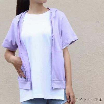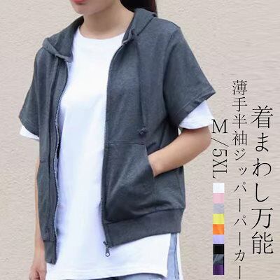 パーカー 薄手 半袖 ジップパーカー レディース 春夏 半袖パーカー 前開き 大きいサイズ ジップアップ トップス アウター ショート アウター 羽織もの 冷房対策 薄手アウター おしゃれ きれいめ