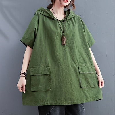 パーカー 半袖 レディース トップス カットソー 夏 tシャツ 無地 プルオーバー パーカー 薄手 ゆったり 大きいサイズ Tシャツ 半そで カジュアル プルオーバーパーカー サマーパーカー フード付