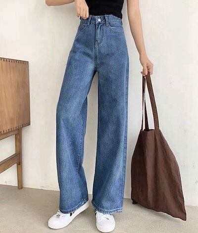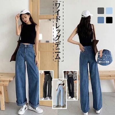 人気沸騰高レビュー!デニムパンツ! レディース ワイドパンツ ストレート 中厚手 ロング丈 ゆったり 原宿系 デニム パンツ ロングパンツ ス 四節用春夏美脚 脚長