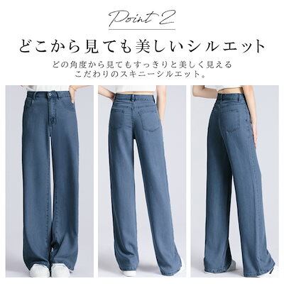 美脚に見えるストレートシルエット デニムパンツ テーパードパンツ ワイドジーンズ ジーパン リラックスパンツ 韓国ファッション レディース ストレッチ 着痩せ ボトムス カジュアル きれいめ 春 夏