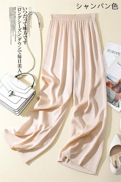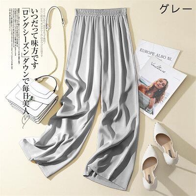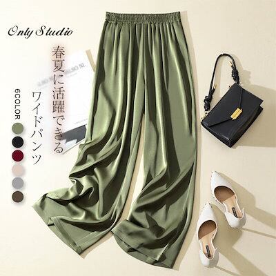 ワイドパンツ レディース 春 夏 夏服 ロング丈 ガウチョパンツ 体型カバー ロング パンツ サテン ウエストゴム 大きいサイズ 小さいサイズ ボトムズ 着痩せ 美脚 通勤 無地 シンプル 可愛い ゆ