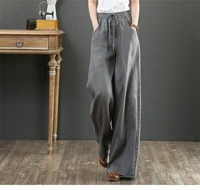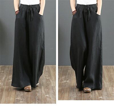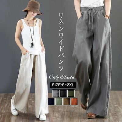 ワイドパンツ レディース パンツ 綿麻 麻 ガウチョパンツ ロングパンツ ロング丈 ウエストゴム リネンパンツ 体型カバー 無地 大きいサイズ ボトムズ ラシャ 春 夏 着痩せ 美脚 おしゃれ カジュ