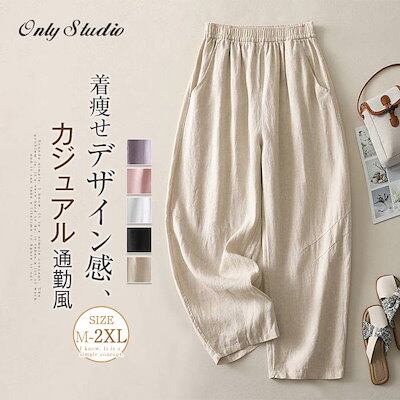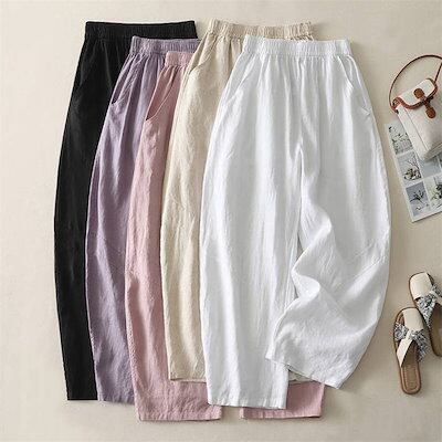 パンツ ワイドパンツ レディース 新作 ストレートパンツ ロングパンツ 無地 綿麻風 ワイド ロング丈 体型カバー ボトムス デザイン感 春 夏 秋 ポケット 薄手 着痩せ お洒落 ゆったり 大きいサ