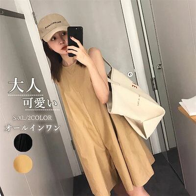 オールインワン サロペット パンツ レディース ノースリーブ ゆったり Vネック オーバーオール 無地 綿 ワイドパンツ サスペンダー 上品 お洒落 かっこいい 大人可愛い 春 夏