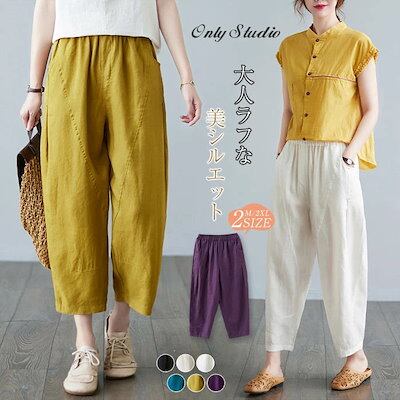ボトムス イージーパンツ サルエルパンツ ワイドパンツ ガウチョパンツ 綿麻調 九分丈 レディース カジュアル ポケット付き ゆったり 大きいサイズ 春 夏 20代 30代 40代 50代 オシャレ