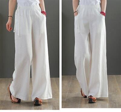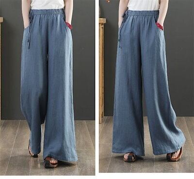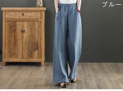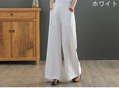 ワイドパンツ レディース ガウチョパンツ ロング パンツ 体型カバー 大きいサイズ ロング丈 ボトムズ 夏 着痩せ 無地 おしゃれ ゆったり コットンリネン混 綿麻調 春 夏 リラックス カジュアル