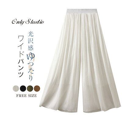 パンツ ワイドパンツ レディース パンツドレス ロングパンツ 無地 チノパンツ ストレートパンツ ボトムス ウエストゴム ロング 着痩せ ガチョウパンツ 春 夏 デザイン感 光沢感 上品感 お洒落 カ