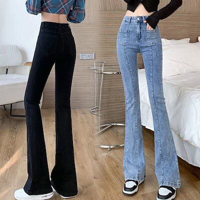 薄い色のジーンズの女性のハイウエストの新しいタイトなワイドパンツ 韓国ファッション