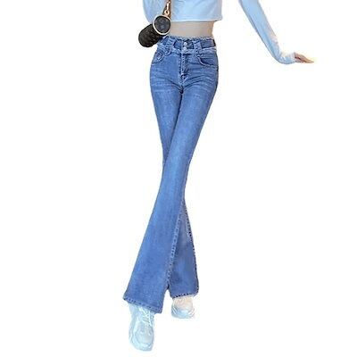 ハイウエストスリムワイドパンツ 韓国版ストレッチバリバリマイクロフレアジーンズレディース ワイドパンツ レディース ロングパンツ ダメージ 脚長効果!スキニーデニムパンツ