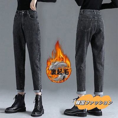 脚長効果!ハーレムパンツ 裏起毛デニムパンツ ジーンズ レディース パンツ ワイドパンツ スキニーモップパンツ 裏起毛 韓国ファッション ズボン秋冬