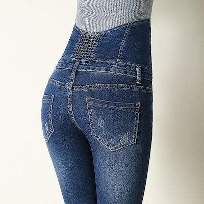 2025 デニムパンツデニ 超ハイウエストジーンズ 足ストレッチレディース 春秋服 韓国版スリムタイツ ダメージ ロングパンツ レディース ワイドパンツ 脚長効果!スキニーデニムパンツ