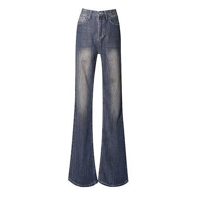 デニムパンツアメリカンレトロ旧ゆったり感ストレートパンツ新型ワイド脚マイクロフレアジーンズ 女 脚長効果!スキニーデニムパンツ ダメージ ロングパンツ レディース ワイドパンツ