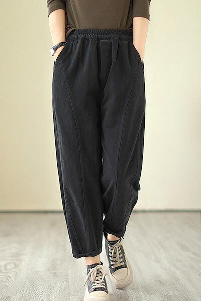 テーパードパンツ パンツ ボトムス ワイドパンツ ガウチョパンツ レディース 秋 冬 ハロンパンツ 無地 ロングパンツ ガウチョ パンツ 秋物 ウエストゴム 綿混 大きいサイズ 体型カバー 40代 5