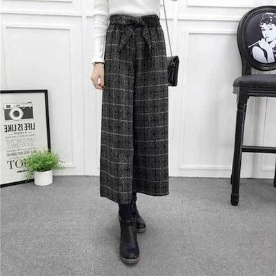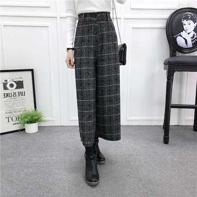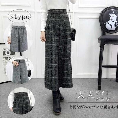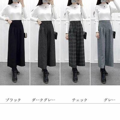 ワイドパンツ 秋冬 ガウチョパンツ レディース パンツ チェック ワイド ボトムス チェックパンツ ロングパンツ 冬 チェック柄 パンツ ロング ガウチョ 防寒 ハイウエスト ウエストゴム 大きいサイ
