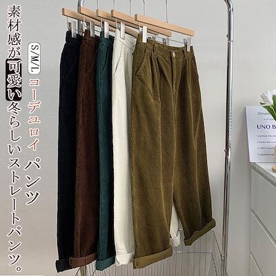 ストレートパンツ レディース ワイド 秋冬 コーデユロイ パンツ 冬 ワイドパンツ ボトムス パンツ ハイウエスト ワイド ロングパンツ マキシ丈 ウエストゴム 秋 無地 パンツ ロング ガウチョ 防