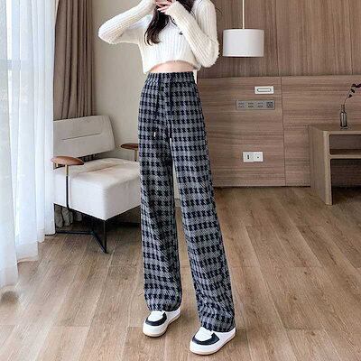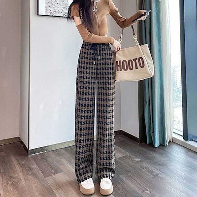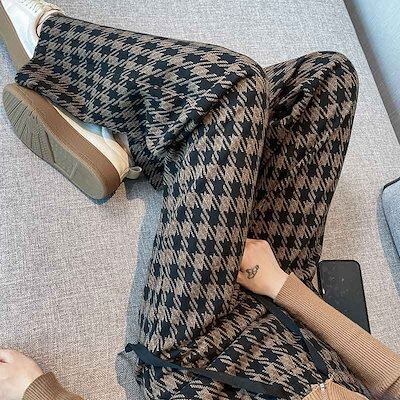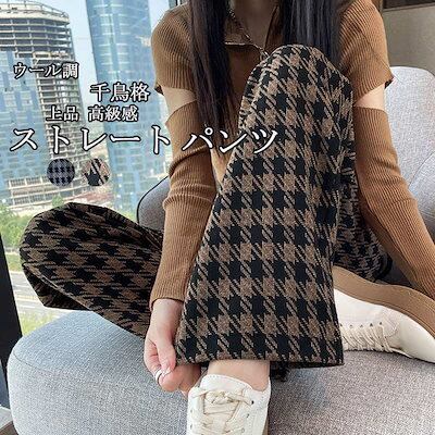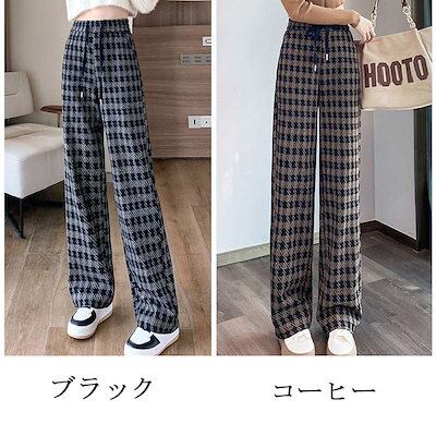 ワイドパンツ ガウチョパンツ ウール調 パンツ レディース 秋冬 千鳥格子 ロングパンツ イージーパンツ 美脚 大きいサイズ パンツ ワイド ガウチョ ボトムス ストレートパンツ ハイウエスト 千鳥柄