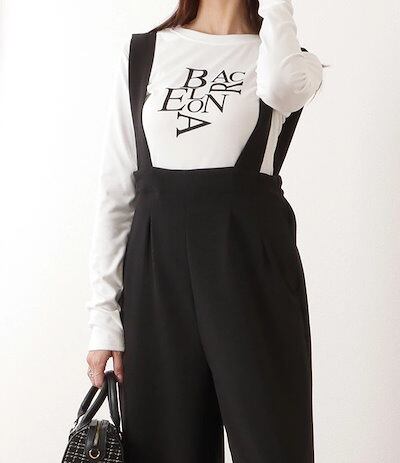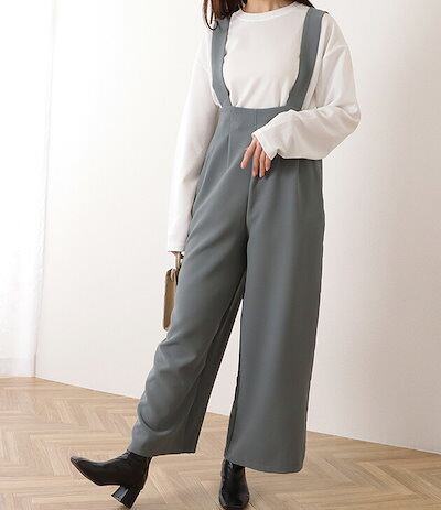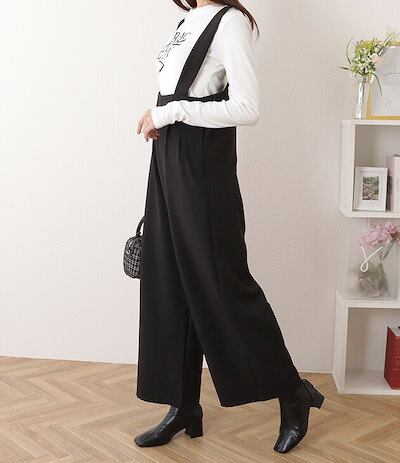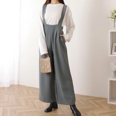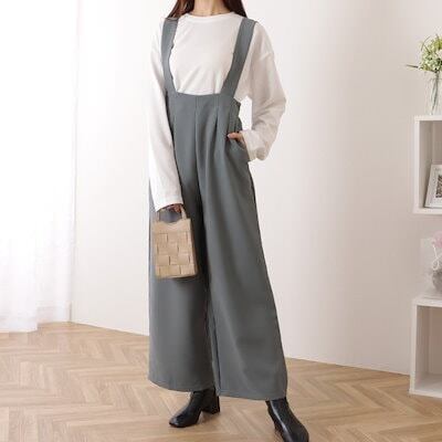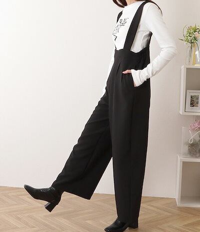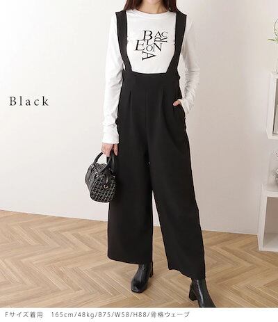 ハイウエスト タック入り ワイド サロペット パンツ 女性 レディース ボトム ズボン オールシーズン 春 夏 秋 冬 ラフ 大人 きれいめ 上品 カジュアル モード シンプル ベーシック 単色 腰高