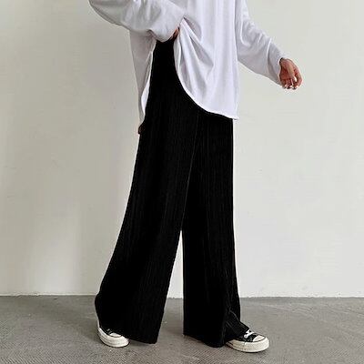 プリーツパンツ 裾カットOK レディース 10分丈 セルフカット プリーツ パンツ ワイドパンツ 秋 冬 リラックスパンツ カジュアル ボトムス ルーズ