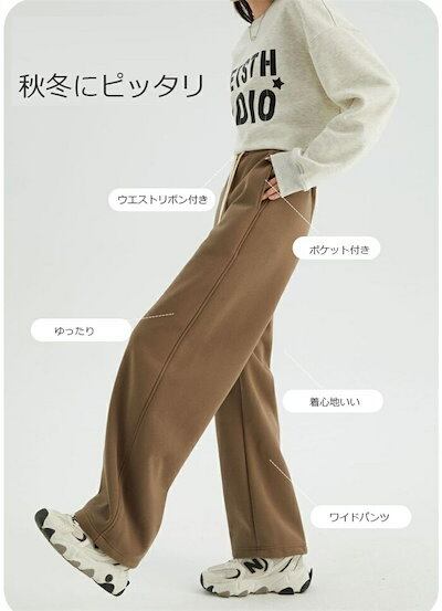 裏起毛 ワイドパンツ ガウチョパンツ パンツ レディース 冬 ワイド カーブパンツ スウェット ウエストゴム ゆったり 体型カバー ジャージ 厚手 裏起毛パンツ スウェットパンツ 裏ボア あっ