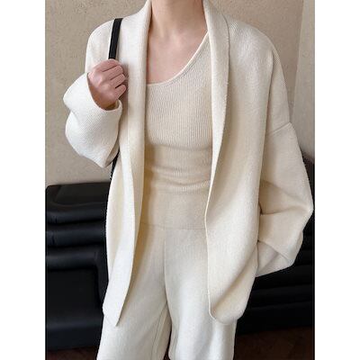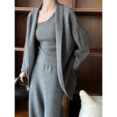 フレンチシンプル高級感2025 レディース秋冬新作カーディガン+ベスト+ワイドパンツ3点セット セットアップ レディース 秋