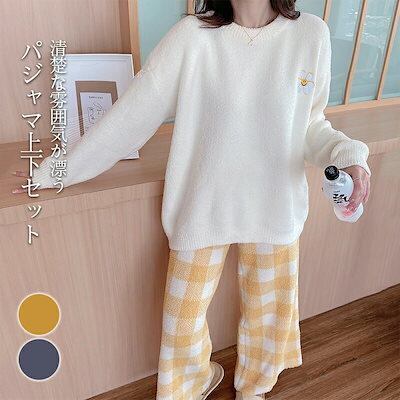 ルームウェア パジャマ レディース 部屋着 冬 セットアップ 上下セット 2点セット 長袖トップス プルオーバー パンツ ロングパンツ ワイドパンツ 秋冬ルームウェア 秋冬パジャマ 日常 チェック柄