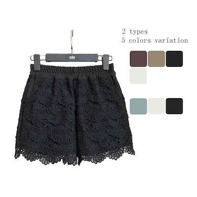 レースパンツ レディース 春 夏 秋 冬 ワイドパンツ ハイウエスト レース付き 切り替え ショートパンツ フリルパンツ ウエストゴム レース付き 下着 ペチパンツ 肌着 安全パンツ 短パン ショ-ト