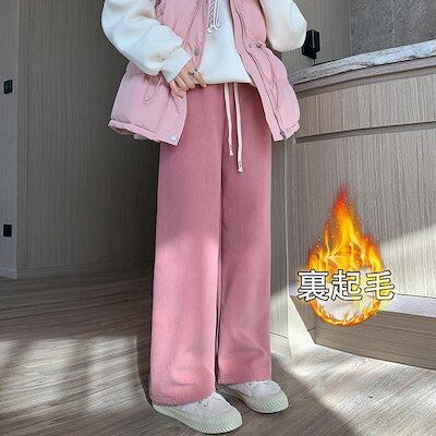大人気 上品 ワイドパンツ レディース コーデュロイ リブ 裏起毛 ボア ガウチョパンツ ボトムス ウエストゴム ロングパンツ カジュアル着痩せ体型カバー 防寒 秋冬 暖かい