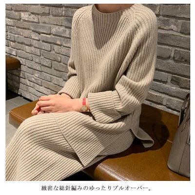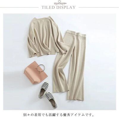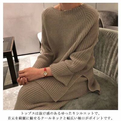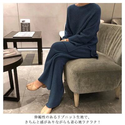 全3色 サイドスリット セットアップ ニット レディース 秋冬 2点セット セーター パンツ ニットパンツ ニットセーター 長袖 ワイドパンツ ルーズ レイヤード風 ロング丈 ゆったり 体
