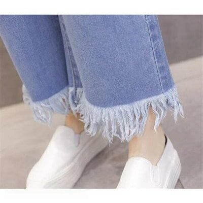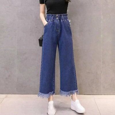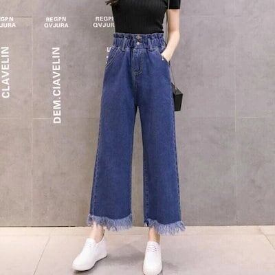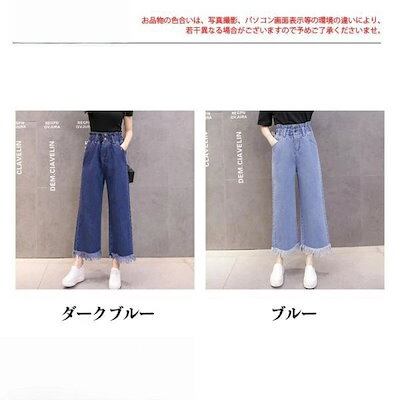 デニムパンツ レディース ワイドパンツ ハイウエスト タッセル 韓国ファッション ボトムス カジュアル ストレッチ 大きいサイズ ゆったり 旅行 大人