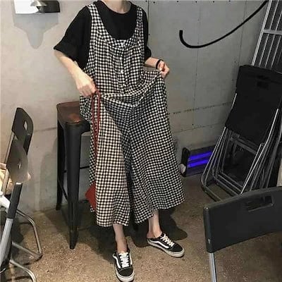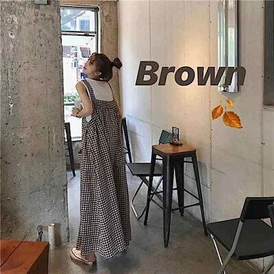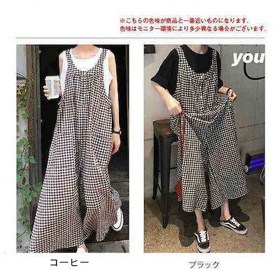 サロペット オールインワン レディース パンツ ワイドパンツ ガウチョ オーバーオール カジュアル 大きいサイズ 体型カバー チェック柄