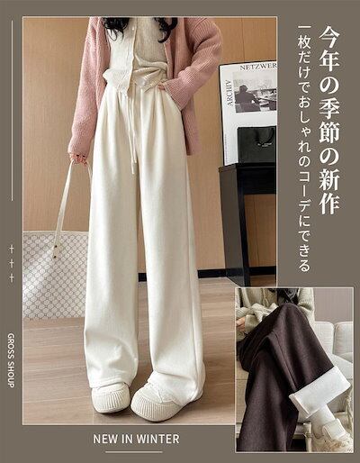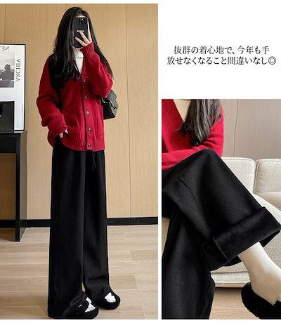 新登場! 裏起毛ワイドパンツ ポケット付き レディース 秋冬 体感+5℃ あったか リブ ワイドパンツ カジュアル ボトムス 極暖 裏ボア リラックスパンツ ゆったり 低身長 高身長 ウエストゴム