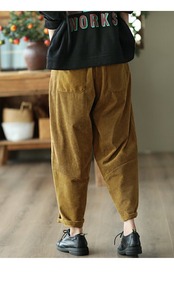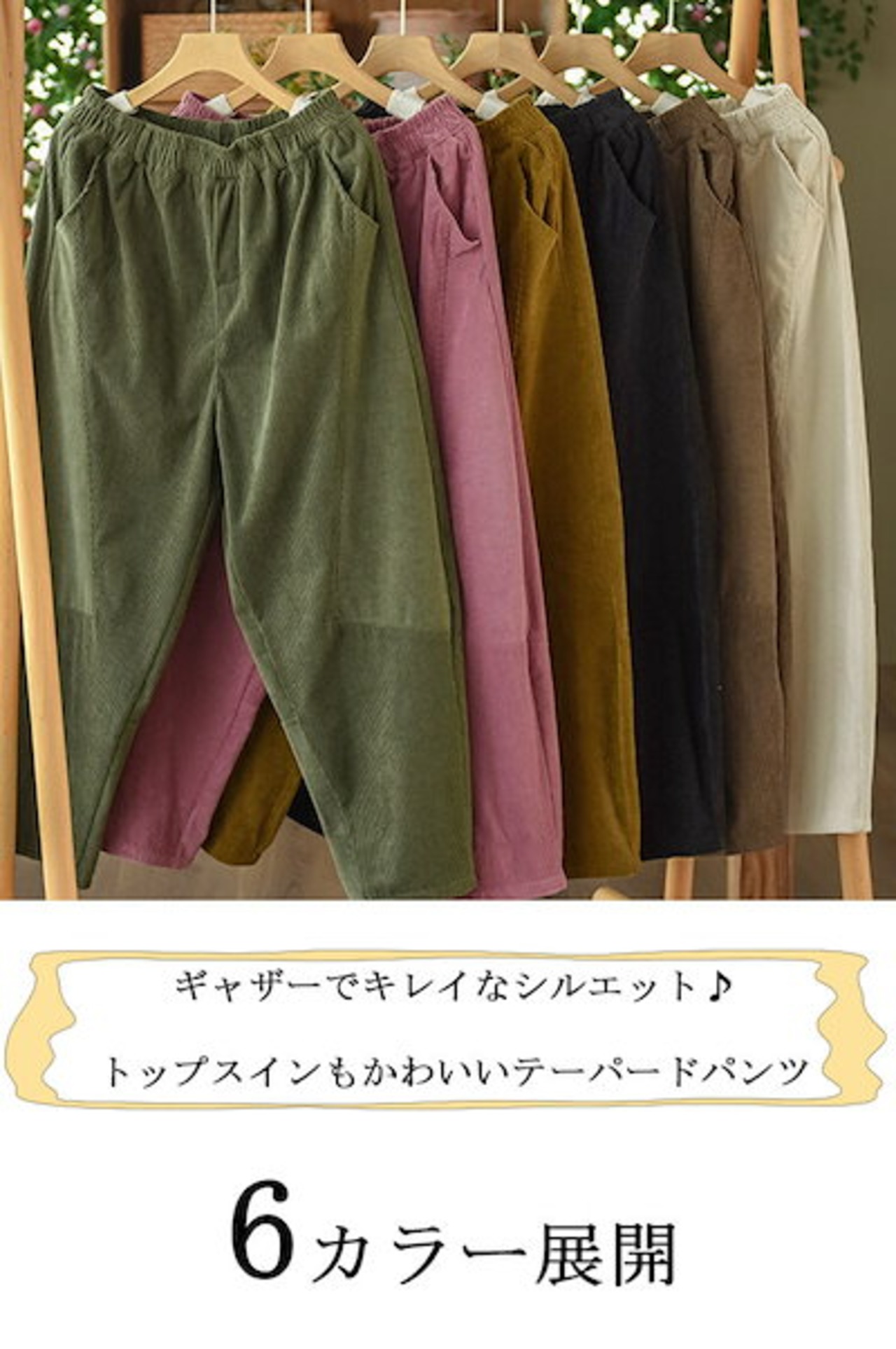 コーデュロイ パンツ テーパードパンツ 黒 40代 レディース 冬 秋 春 コーデュロイパンツ 大きいサイズ ウエストゴム ワイド パンツ テーパードパンツロング バルーンパンツ ボリューム 春物穿き | DOKO-ME