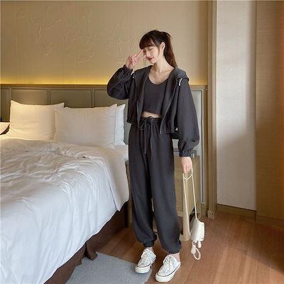 涼しく楽ちんセットアップセットアップ レディース 2023 秋冬 新作 スポカジ 三点セット トップス+スウェットパンツ+タンクトップ