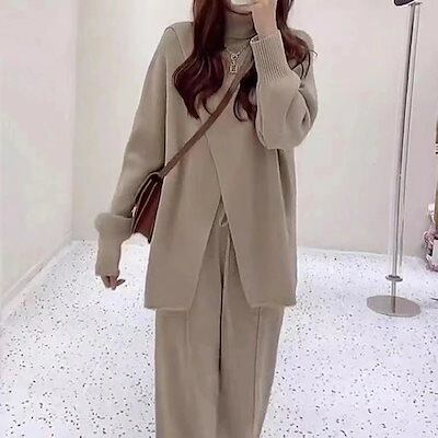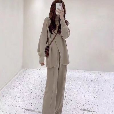 セットアップ 涼しく楽ちんセットアップ秋冬 新作 おしゃれ 気質 レディースセットアップ ニット アウター 二点セット 上下セット セーター ワイドパンツ セットアップ