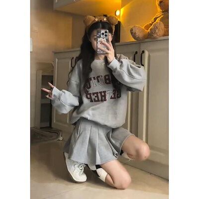2025秋冬 大人可愛い 2点セット 普段使い 長袖トップス ミニスカート ショート レディース あたたかい シャツ かわいい シルエット風きれいめサイズ秋冬ゆったり ファッションルーズダブル