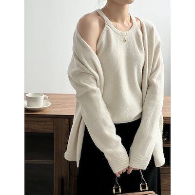 セットアップ 涼しく楽ちんセットアップ秋冬 新作 おしゃれ 気質 ニット キャミソール カーディガン 二点セット 百掛け 通勤 レディースセットアップ アウター 上下セット
