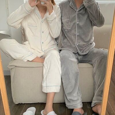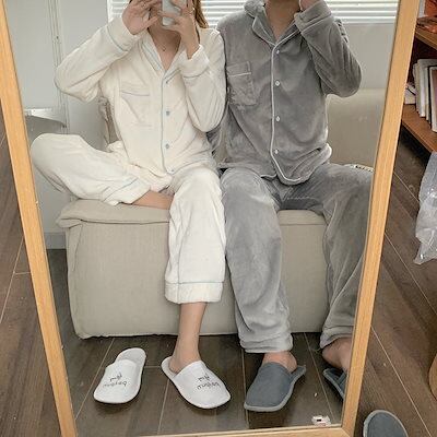 2024年 冬 韓国版ins カップル モデル シンプルな 柔らかい 肌触り 部屋着セット 厚手パジャマ レディース ゆったりら 楽ちん 2点上下セット ズボン スウェット