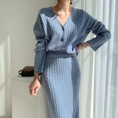 【急速発送】【2枚購入で 2oo円OFF!】2025秋冬新作 おしゃれ シンプル レディースセットアップ ニットカーディガン スカート 二点セット 気質 涼しく楽ちんセットアップ セット