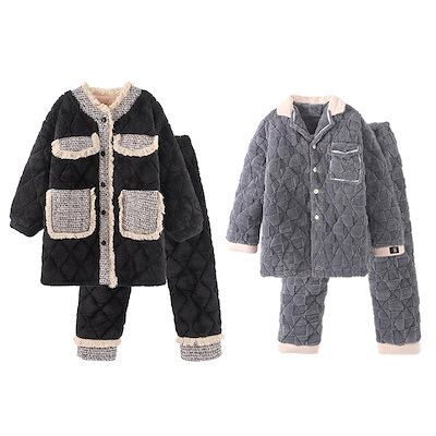 カップルパジャマレディース 冬サンゴベルベット三層綿パジャマ保温ルームウェア男性大サイズ寝間着部屋着