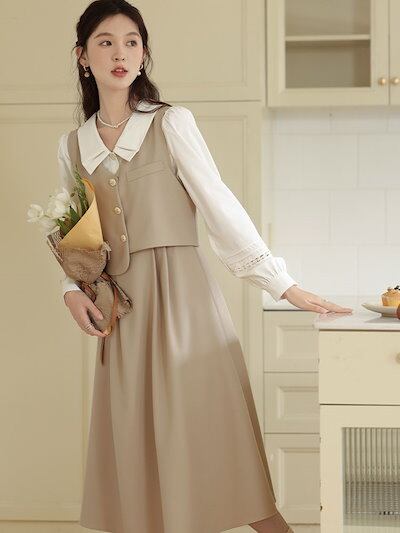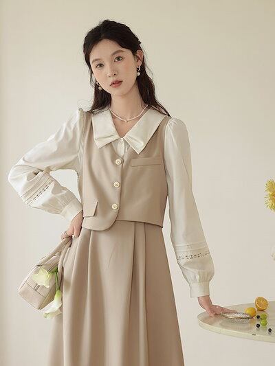 冬アウター 涼しく楽ちんセットアップ襟付きワンピース女性秋デザイン感小衆スカートシャツセット韓国ファッションおしゃれ