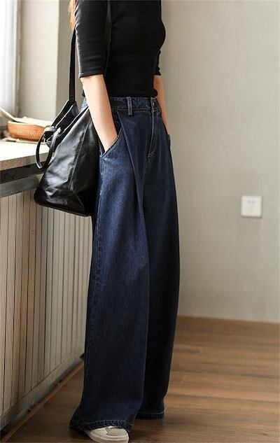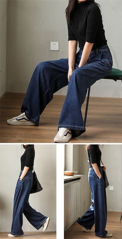 タック デニム ワイドパンツ デニムパンツ レディース ロング マキシ パンツ 春 秋 冬 ボトムス ジーンズ タックパンツ 体型カバー ロングパンツ ストリート 長ズボン 大きいサイズ 春秋 着痩せ