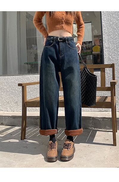 【急速出荷】裏起毛ジーンズ レディース ジーパン ワイドパンツ 裏ボア デニム 冬 裏起毛パンツ ゆったり 裏起毛デニム 裏起毛ジーパン ストーンウォッシュ 体型カバー デニムパンツ ロングパンツ お