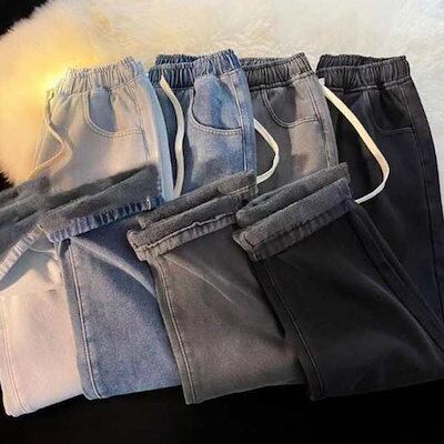 【新作入荷】あったか 裏起毛 ジーンズ ウエストゴム パンツ 厚手 レディース ジーパン ストレートパンツ 冬 ハイウエスト ワイドパンツ 防寒 着痩せ 秋 デニム 大きいサイズ ジーンズ 暖かい