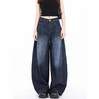 デニムワイドパンツ レディース デニムパンツ カーブパンツ 秋冬 パンツ ジーパン ボトムス ワイドルーズ ロング丈 長ズボン カーブデニム ジーンズ 大きいサイズ ゆったり 体型カバー 大人 カジュ